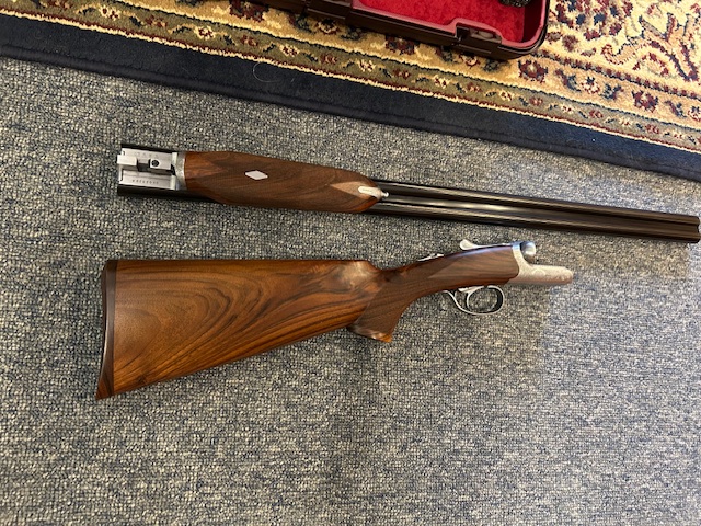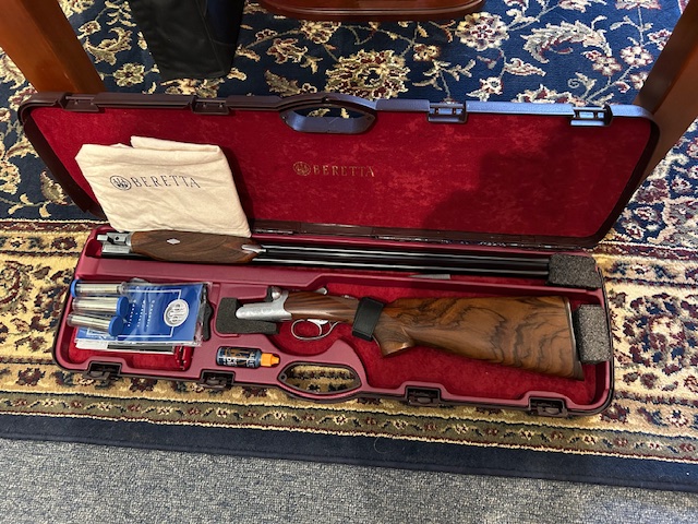Beretta 486 20ga. 28″ Parallelo side x side shotgun. This gun features a round action with scroll engraving, pistol grip stock and beavertail forearm, factory screw in chokes and comes in a Beretta hard case with all the accessories. Please give us a call for your best pricing.