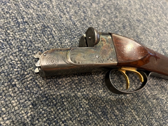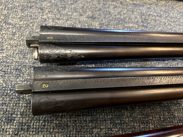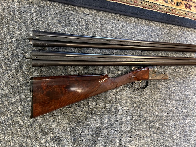 Ithaca 4E Special 20ga. 26″/28″ two barrel set. This gun features upgraded wood, case colored receiver with game scenes, barrel tips and breach engraving on barrels, #1 & #2 on barrels in gold, English stock and splinter forearm. Please give us a call with any questions and for best pricing.